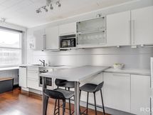 Varustus: Keraaminen liesi, liesituuletin, uuni, astianpesukone, jääkaappipakastin, mikroaaltouuni.