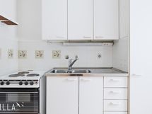 Liesi: sähköliesi. Työtasot: metalli. Kylmäsäilytys: jääkaappi/pakastin.