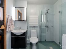 - Varusteet: suihku, suihkuseinä, peilikaappi, allaskaappi, WC. Tilava kylpyhuoneen ja wc:n yhdistelmä. Pesutornille löytyy tila. WC: WC on kylpyhuoneen yhteydessä