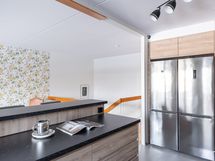 - Liesi: induktio. Työtasot: laminaatti. Kylmäsäilytys: jääkaappi/pakastin, jää/viileäkaappi. Varustus: mikroaaltouuni, astianpesukone, kiinteät valaisimet, liesituuletin / suodatin.