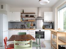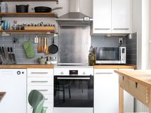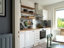 - Keittiön varusteet: jääkaappi / pakastin, astianpesukone, lattialiesi induktioliedellä ja liesituuletin (aktiivihiilisuodatin)