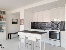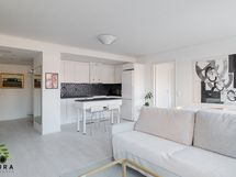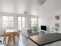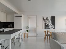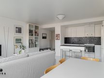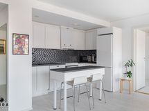 - Varustelu: jääkaappi/pakastin, astianpesukone (Whirlpool), liesi (Electrolux), liesituuletin, kiinteät kaapistot ja kiinteät valaisimet. Laminaattilattia, seinät maalattu.