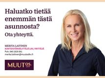 Huoneiston todellinen pinta-ala voi olla yhtiöjärjestyksessä, isännöitsijäntodistuksessa ja esitteessä mainittua pienempi tai suurempi. Hinta ei ole pinta-alaperusteinen.