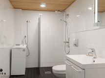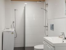 - Pesutilojen kuvaus: Varustelu: suihku, suihkuseinä, seinä wc, allaskaappi, peilikaappi, pesukoneliitäntä ja kiinteät valaisimet.