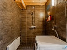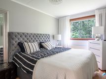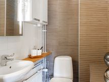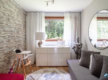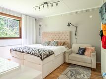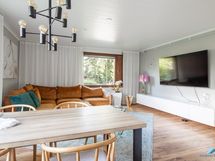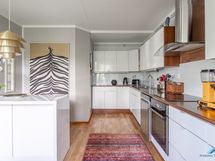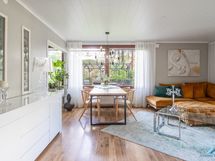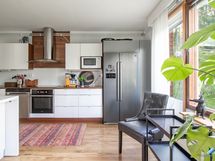 Keittiö on uusittu moderniksi, ja sen tyylikkäät teräspintaiset koneet tekevät siitä kodin sydämen. Olohuone on tilava ja valoisa. Kylpyhuone, sauna ja WC on remontoitu tummilla tyylikkäillä laatoilla, ja saunassa on oma puukiuas rentouttavia löylyhetkiä varten.