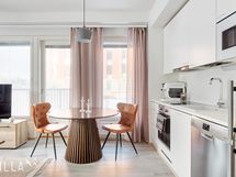 Suuret ikkunapinnat, vaaleat ja raikkaat materiaalit sekä moderni ilme luovat harmonisen kokonaisuuden, joka kestää aikaa. Asunnon kunto on erinomainen ja viimeistely huoliteltua, joten tämä koti on myös varteenotettava vaihtoehto uudiskohdetta etsivälle - pääset muuttamaan valmiiseen kotiin ilman rakentamisen odotusta.