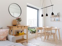 - Avokeittiö, jääkaappipakastin, uuni, induktioliesi. Parkettilattiat ja maalatut seinät.