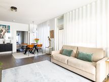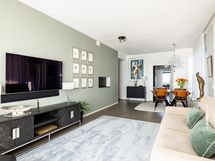 - Tyylikkäästi remontoitu keittiö on yksi tämän kodin helmistä. Keittiössä on integroitu jääkaappipakastin (BOSCH, 2021), erillisuuni, induktioliesitaso, integroitu liesituuletin (Siemens, 2021) sekä integroitu astianpesukone (BOSCH, 2021). Tilaa on runsaasti niin työskentelypinnoille kuin säilytykselle, ja keittiöstä avautuu valoisa näkymä olohuoneeseen.