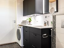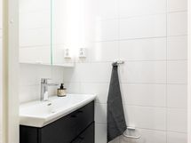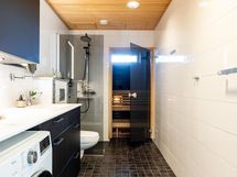 - Ikkunallisessa saunassa on sähkökiuas (Harvia, 2023). Tilavassa kylpyhuoneessa on sadesuihku (Oras, 2023), suihkuseinä, peili- ja allaskaapisto, wc-istuin sekä pesukoneliitäntä. Kylpyhuoneessa on huomioitu tila arjen pyykkihuoltoon. Erillisessä wc:ssä on peili- ja allaskaapisto (asennettu 2023). Lattialämmitys sisältyy hoitovastikkeeseen.