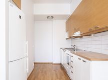 - Keittiön varusteluun kuuluu jääkaappipakastin, keraaminen liesi, liesituuletin, astianpesukone, kaapistot, kiinteät valaisimet.