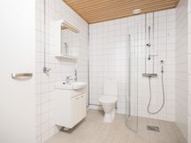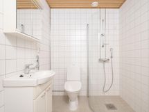 - Kylpyhuoneessa on suihku, suihkuseinä, peilikaappi, allaskaappi, pesukoneliitäntä.