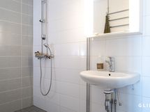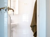 - Varusteet: suihku, peilikaappi, pesukoneliitäntä, kuivauskaappi. Erillinen kylpyhuone jonne mahtuu pyykinpesukone, huomioitava oviaukon leveys. WC: erillinen wc. Varusteet: bidee, lattiakaivo, peili