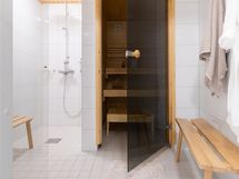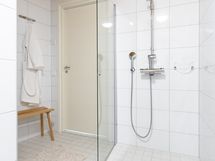 - Pesutilojen kuvaus: Varusteet: Suihku, suihkuseinä ja lattialämmitys