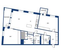 - Varusteet: Jääkaappi, erillinen pakastin, liesi, liesituuletin,