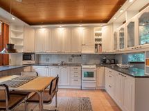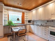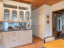 - Keittiön varusteet: Liesituuletin, jääkaappipakastin ja liesi. Liesi: sähköliesi. Työtason materiaali: Laminaatti.