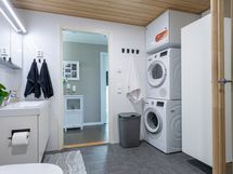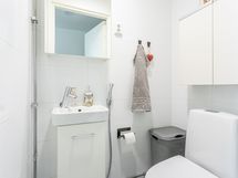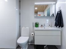 - Pesutilojen varusteet: WC-istuin, suihku, pesukoneliitäntä, peilikaappi, allaskaappi, lattialämmitys, pesuallas, pesukone, kuivausrumpu ja irrallinen korkea pyykkikaappi. Erillisen WC:n varusteet: Peilikaappi, allaskaappi, pesuallas, bidee-suihku, lattialämmitys, wc-istuin, lattiakaivo ja lääkekaappi. Erillisen WC:n kuvaus: Rakennusvaiheessa Skanskalla lisätyönä teetetty erillinen wc. Asunnossa 2 x wc.