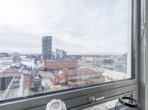 - Keskustan suuntaan, yli kattojen