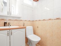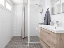 - Varustus: suihkuseinä, lattialämmitys, wc-istuin, suihku, peili, kiinteät valaisimet, kylpyhuonekaapisto. Varustus: peilikaappi, bidee-suihku.