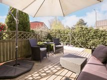 - yhtiöjärjestyksen mukainen, isännöitsijäntodistuksen mukainen 1. krs: Olohuone + keittiö + ruokailutila + makuuhuone + vh + wc + katettu terassi + piha +