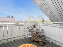 - Huoneistosta näkymät länteen, itään ja pohjoiseen. Länsi piha ja parveke. Toinen parveke pohjoiseen.