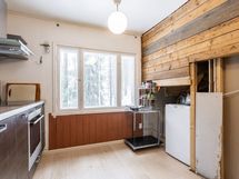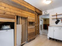 Kellarista löytyy sauna ja kodinhoitotila. Tilat ovat remontin tarpeessa joten hieno mahdollisuus tehdä tiloista juuri sellaiset kuin haluaa.