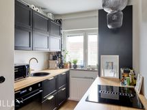 - Liesi: induktio, erillisuuni. Työtasot: puu. Kylmäsäilytys: jääkaappi/pakastin. Varustus: astianpesukone.