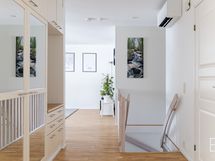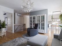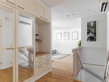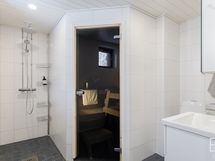 - Varustus: lattialämmitys, wc-istuin, suihku, kiinteät valaisimet. Erillisen WC:n kuvaus: Yläkerrassa erillinen wc, jossa allaskaappi ja peilikaappi .