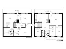 - Pinta-alan peruste: Ei tarkistusmitattu. Pinta-alat saattavat tämän ikäisissä kohteissa (rekisteröity ennen 01.01.1992) poiketa olennaisestikin asuinrakennusten nykyisten mittaustapojen ja standardien (SFS 5139) mukaan laskettavasta asuintilojen pinta-alasta. Pinta-ala voi siis olla edellä mainittua pienempi tai suurempi. Yläkerta: 3mh,oh,k = 96 m2
