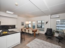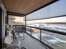 Kivirannalla uudehko kolmio jokinäkymillä. Asunnossa hyvänkokoinen keittiö, ruokailutila ja olohuone yhdistelmä josta näkymät joelle. Kaksi reilun kokoista makuuhuonetta. Erillinen kodinhoitohuone helpottamassa arjen pyörittämistä. Kylpyhuoneessa kaksi suihkua sekä myös wc. Asunnosta löytyy myös erillinen wc ja oma sauna. Asunnossa hyvin säilytystilaa. Reilun kokoiselta parvekkeelta esteetön upea jokinäkymä Torniojoelle.