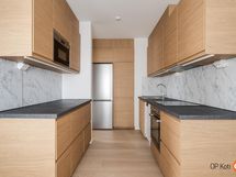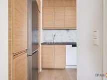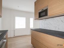 - Jääkaappipakastin, keraaminen liesi, liesituuletin, astianpesukone, kaapistot, kiinteät valaisimet. Keittiö remontoitu 2025/2026