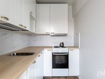- Liesi: sähköliesi. Työtasot: laminaatti. Kylmäsäilytys: jääkaappi/pakastin. Varustus: liesituuletin, astianpesukone. Pyykinpesukone