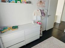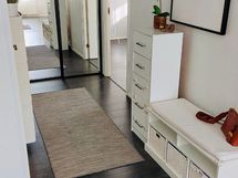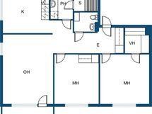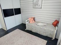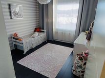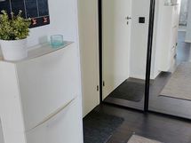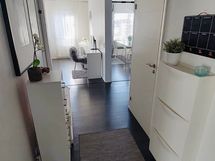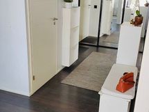 Tummat laminaattilattiat ja vaalean sävyiset seinät tahdittavat asunnon kaikkien huoneiden tunnelmaa. Olohuoneessa upea vaalea kivitehosteseinä. Vaatehuone sekä suuret lasiliukuovelliset kiinteät kaapistot mahduttavat perheen tavarat mukavasti sekä kellarin häkkivarasto suuremmille tavaroille.