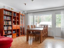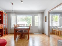 - olohuoneesta ja keittiöstä metsäinen takapiha, makuuhuoneista etupiha