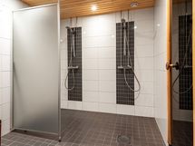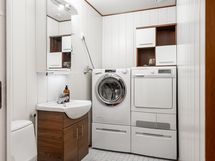 - Sauna, sähkökiuas, kylpyhuone, suihku 2 kpl, suihkuseinä, allaskaappi, pesukoneliitäntä, lattialämmitys kylpyhuoneessa, kiinteät valaisimet.