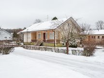 Alhaalla talon yhteydessä on autotalli.