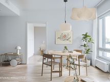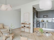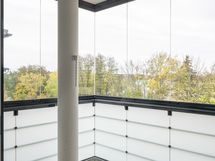 Tämä kaunis koti ihastuttaa valoisuudellaan ja suurilla ikkunoillaan. Olohuoneesta on kulku lasitetulle parvekkeelle, joka toimii kesäisin ihanana kesäkeitaana ja viherhuoneena. Lasituksen ansiosta parvekekausi alkaa jo aikaisin keväällä, jatkuen pitkälle syksyyn. Parvekkeelta aukeavat avarat näkymät kattojen yli lounaaseen.