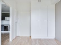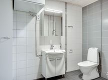 Makuuhuoneessa on kaapistot vaatesäilytykseen, lisää säilytystilaa löytyy eteisen kaapistoista. Kylpyhuone/wc, jossa on hyvät tilat niin peseytymiseen, kuin pyykkihuollollekin, sijaitsee makuuhuoneen yhteydessä. Saunomaan pääset taloyhtiön saunaan.