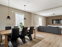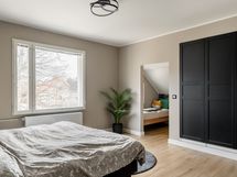 Yksi Turun suosituimpia alueita, kivenheiton (tai kahden) päässä Tyksistä ja keskustaan pyöräilee kymmenessä minuutissa. Talon sisääntulokerroksesta löytyy mukavankokoinen uusittu keittiö, jossa esimerkiksi astianpesukone on täysin korkkaamaton. Ruokailutila ja olohuone on yhdistetty yhdeksi isoksi tilaksi ja keskeltä löytyy tunnelmatakka. Lisäksi keskikerroksessa myös suihkutilalla varustettu wc. Eteisestä lähtee portaat sekä yläkertaan, että kellariin. Yläkerrassa kaksi hyvänkokoista makuuhuonetta, joissa seiniin upotetut kaapistot, sekä upea wc/kph ammeella. Päämakuhuoneesta löytyy myös tunnelmatakka. Kellarikerroksessa oleskelu-/baarihuone, jota saa toki helposti muunneltua omaan käyttöön sopivaksi. Lisäksi kylpyhuone ja sauna, sekä tekninen tila jossa on tilaa vaikka säilytykselle tai pienelle verstaalle. Talossa kaikki pinnat ja iso osa tekniikasta on uusittu muutaman vuoden sisällä, joten taloon voi kantaa omat tavarat suoraan sisään! Pihalta löytyy myös erillinen terassi sekä oma autotalli. Taloa remontoidessa on käytetty upeita materiaaleja ja valoja on upotettu/piilotettu mukavasti. Todella uniikki kokonaisuus, jota kannattaa paikan päälle tulla katsomaan.