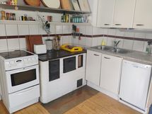 - Tilaa isolle ruokapöydälle, Laminaattitasot, Astianpesukone, Keraaminen liesi, Liesikupu, Jääkaappi, Jääkaappi. Alkuperäinen puuliesi.