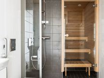 Huoneiston kokonaisuus käsittää mm. avokeittiön yhdistettynä olohuoneella, makuuhuoneen mistä kulku lasitetulle parvekkeelle, ison vaatehuoneen, tyylikkäästi valaistun saunan Harvian kiukaalla sekä kylpyhuoneen tasokkailla Gustavsbergin ja Oraksen vesikalusteilla. Asuinviihtyvyyttä ja avaruutta lisäävät vaaleat seinät sekä vaaleansävyinen tammilaminaattilattia.