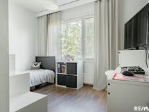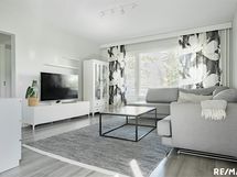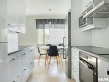 - Keittiön varusteet: Jääkaappipakastin, erillisuuni, liesi, liesituuletin ja astianpesukone. Liesi: Induktioliesi. Työtason materiaali: Laminaatti.
