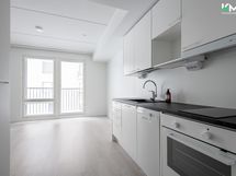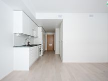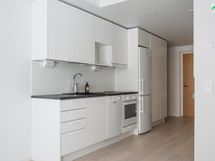 - kalusteuuni, induktioliesitaso, liesikupu, jääkaappi/pakastin, astianpesukone, tilavaraus mikroaaltouunille. Lattia: Kovapuu. Seinät: Maalattu, välitila alumiinikomposiittia