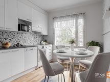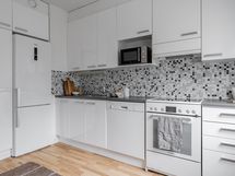 - Jääkaappipakastin (2019), lattialiesi keraaminen liesitaso, kiertoilmauuni, liesituuletin, astianpesukone, kaapistot, kiinteät valaisimet.