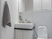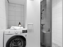 - Kylpyhuone, erillinen wc, suihku, suihkuseinä (liukuovella), peilikaappi (wc), kaapit (pyykkikaappi ja yläkaapit) (wc:ssä lisäkaappi), allaskaappi (wc), pesukoneliitäntä (kph), kiinteät valaisimet.