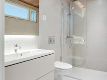 Alakerran pesuhuone / khh myös kauttaaltaan isoa laattaa. Pesuallas, hana, kaapistoa, suihkuseinä ja suihku. Erillisten WC:n lukumäärä: 2. Erillisen WC:n kuvaus: Alakerran erillisen wc:n lattia laattaa (luonnonkiveä), seinät maalattu, seinä-wc, valopeili sekä allaskaapistoa,.