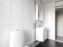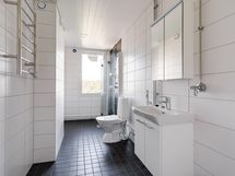 - Pesutilojen varusteet: WC-istuin, suihku, suihkuseinä, pesukoneliitäntä, peilikaappi, lattialämmitys, bidee-suihku, allaskaappi, pesuallas ja pyyhekuivain. Pesutilojen kuvaus: Kylpyhuone remontoitu 2023. Erillisten WC:n lukumäärä: 1. Erillisen WC:n varusteet: WC-istuin, pesuallas ja bidee-suihku.