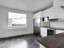 - Keittiön varusteet: Jääkaappi, erillinen pakastin, liesituuletin, mikroaaltouuni, liesi ja astianpesukone. Liesi: Keraaminen liesi. Työtason materiaali: Laminaatti. Keittiö remontoitu 2011.