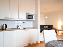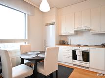 Ruokapöydälle on hyvä paikka keittiöstä, josta on myös helppoa siirtymä lasitetulle parvekkeelle nauttimaan aamukahvit. Lasitettu parveke tarjoaa lisähuoneen melkein ympäri vuoden.