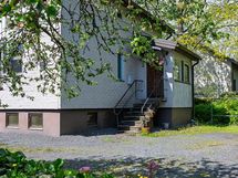 Tiililaattaverhoiltu talo on tilajaoltaan perinteinen rintamamiestalo, tilat sijoittuvat kolmeen kerrokseen. Sisään tullaan lasiverannalle, josta jatketaan asuinkerroksen tiloihin. Asuinkerros on ympäri kuljettava, se muodostuu keittiöstä ja kahdesta asuinhuoneesta. Erillinen WC on myös. Tämän kerroksen helmi on olohuoneen kaunis, todennäköisesti alkuperäinen kaakeliuuni. Yläkerrassa on kaksi vinttikamaria, WC ja säilytystiloja. Kellarissa on takkahuone, saunaosasto, pannuhuone ja varastotilaa. Puutarhamainen tontti on pinta-alaltaan reilut 1200 m2.