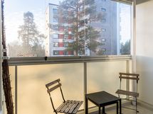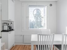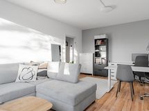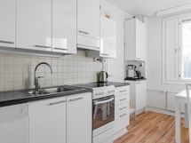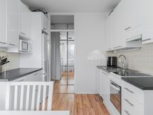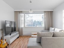Asunnon 59 neliömetriä on suunniteltu toimivaksi ja viihtyisäksi kokonaisuudeksi. Keittiö on varustettu nykyaikaisilla kodinkoneilla ja laminaattitasoilla, Olohuoneen ja makuuhuoneen lattioissa on hyväkuntoinen vaalea laminaatti, ja kylpyhuoneessa on miellyttävä lattialämmitys. Lisäksi asuntoon kuuluu parveke etelään.